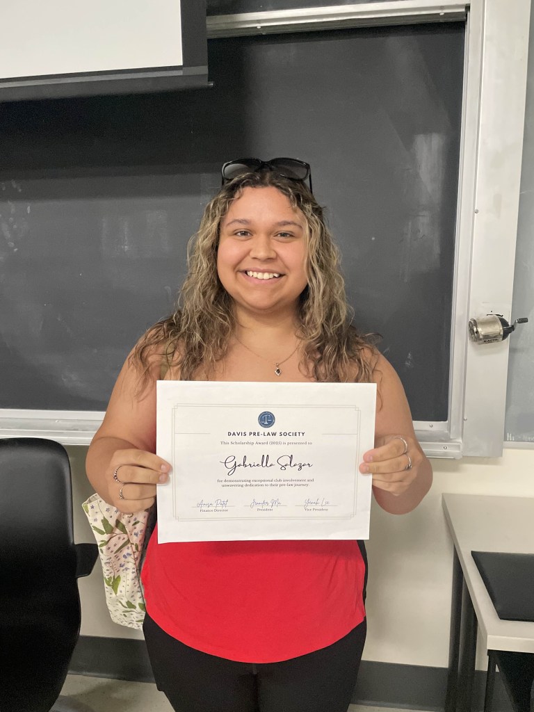 Gabriella Salazar is a graduating senior who majored in Political Science and Psychology. She has been a member of DPLS for four years! With this scholarship, she will be able to study hard for the LSAT and apply to law schools in the near future. Congratulations on your award!